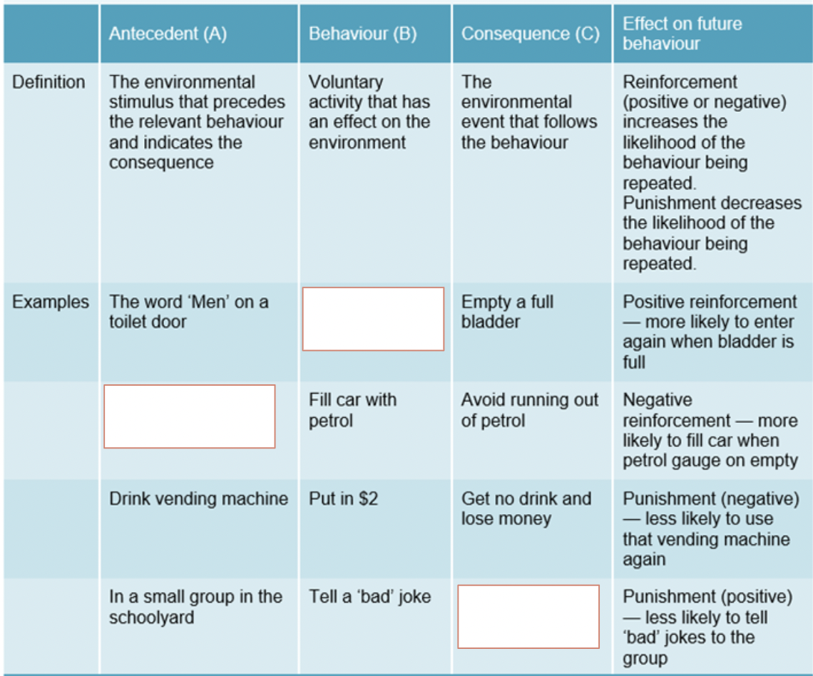 Basically, a specific antecedent prompts relevant behaviour that is followed by a specific consequence