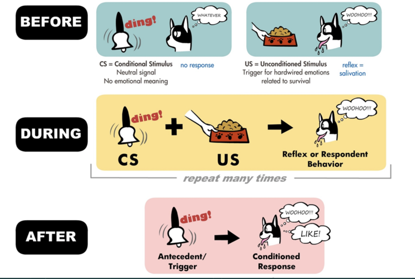Yet, through repeated association with the UCS, the CS triggers a very similar response to that caused used by the UCS