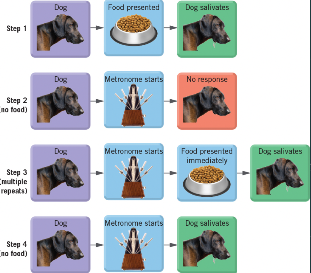 Conditioning is the process of of learning associations between a stimulus in the environment (one event) and a behavioural response (another event).