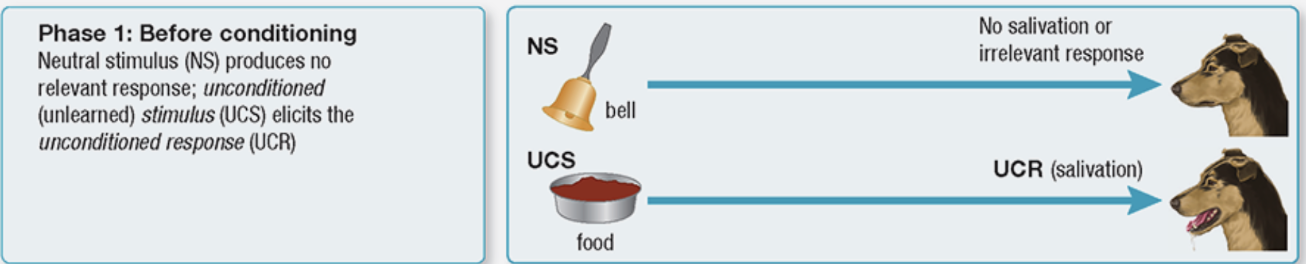 BEFORE CONDITIONING; Unconditioned Stimulus (UCS) & Unconditioned Response (UCR)