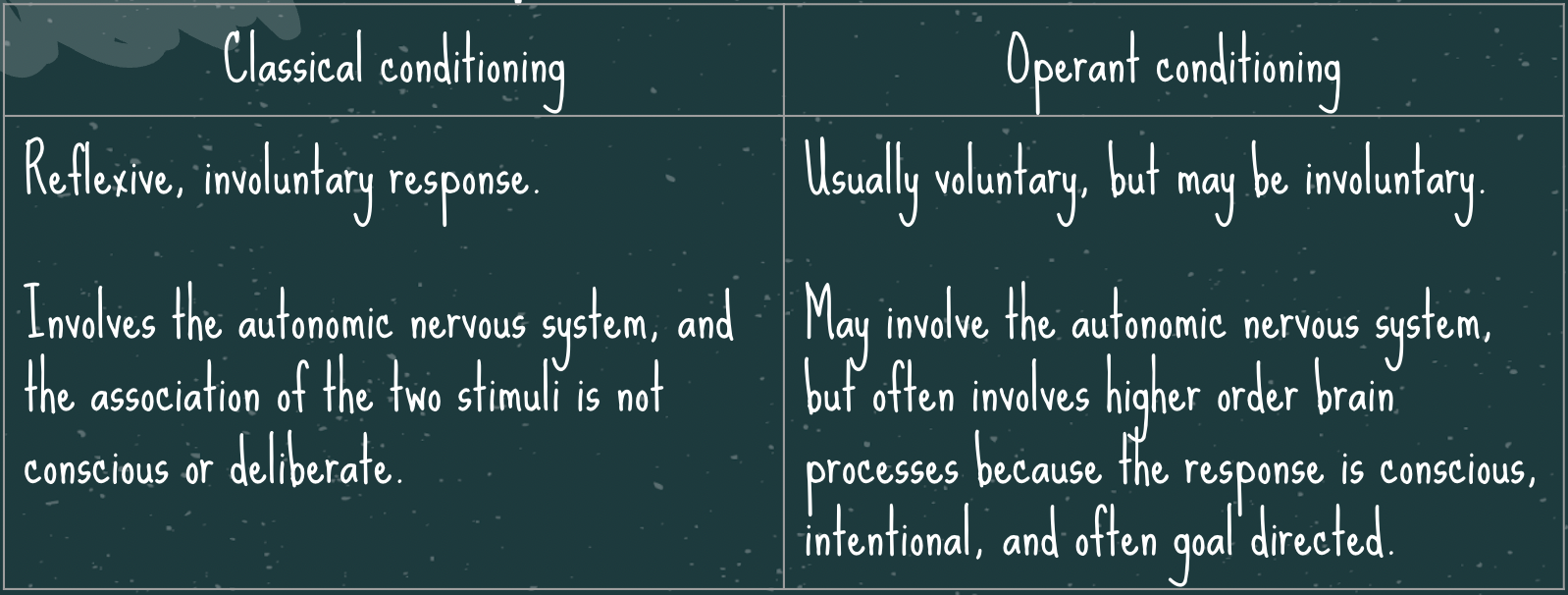 In CC, the response is involuntary- an automatic response to something happening environment.