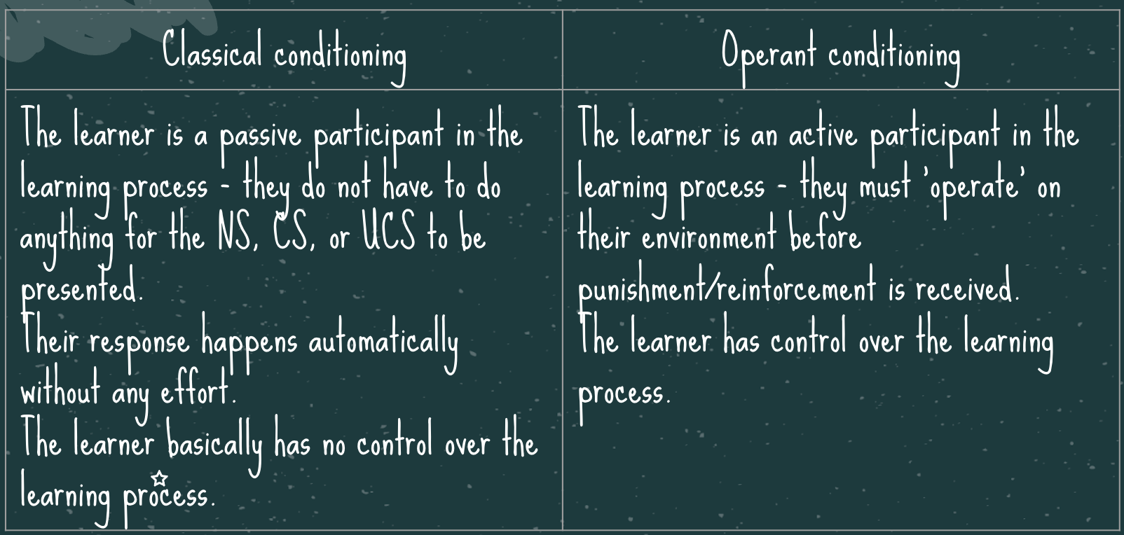 Operant conditioning is similar to classical conditioning as they are both learning but they are also very different