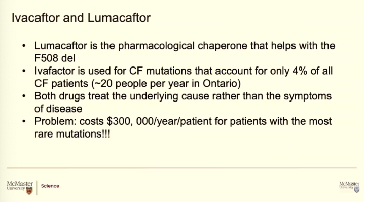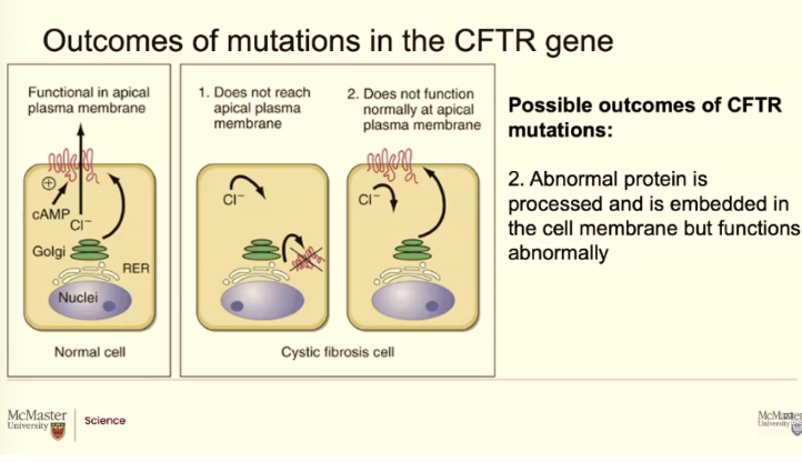 Patients with cystic fibrosis, like I said, there's a mistake in the DNA code. That trickles down to the amino acid sequence that trickles down to how the protein folds. Soemtimes you don't get any CFTR proteins at all. If there is a mistake and the protein cant fold it, it may ever make it to the membrane OR if it does it isnt not working well.