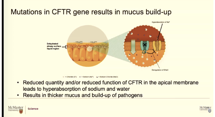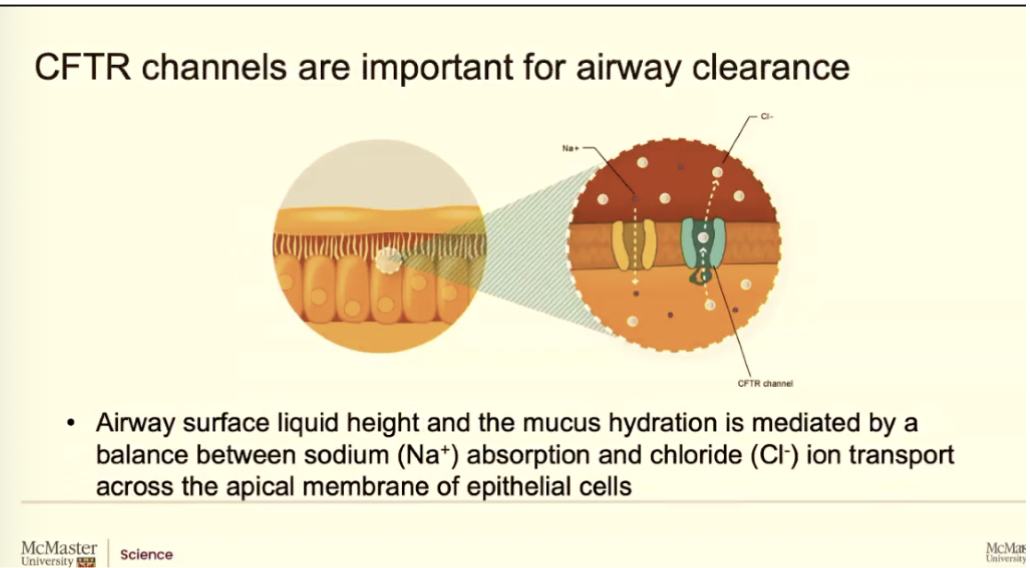 If the CFTR protein isn't working, obviously chloride isn't moving, but the biggest problem for the airways and for all the symptoms we see is these sodium channels.