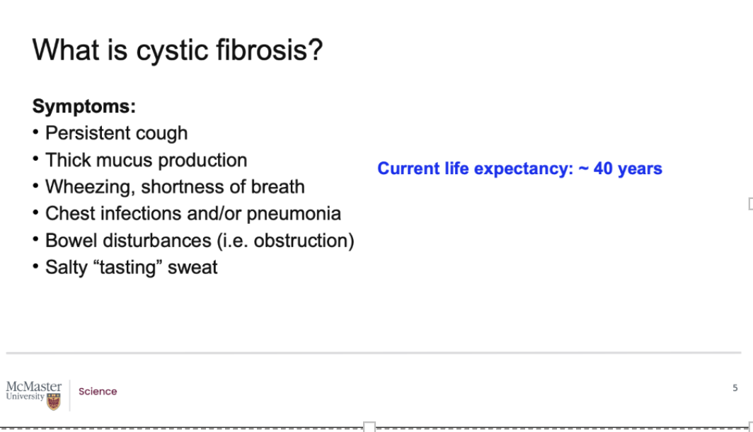 At the DNA level, we know at least 1900 different mutations that in the CFDR protein can cause cystic fibrosis.