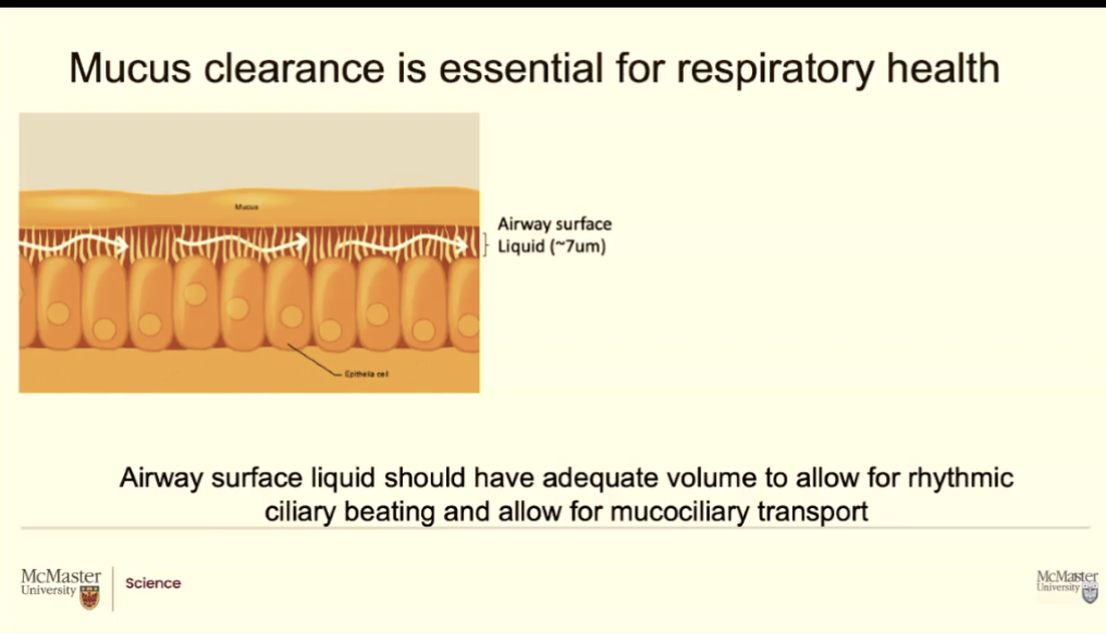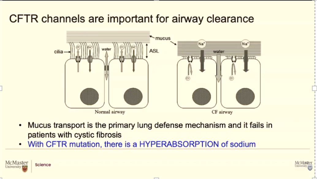 If it was not controlled by the chlorine channels (CFTR) they would take all the sodium form he airway surface liquid and just dump it into cells, nut that doesn’t happen