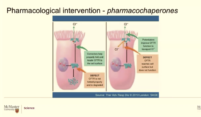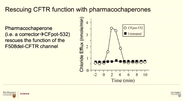 Medicinal chemists can make potentiators that target CFTR proteins that are at the membrane but are not working correclty