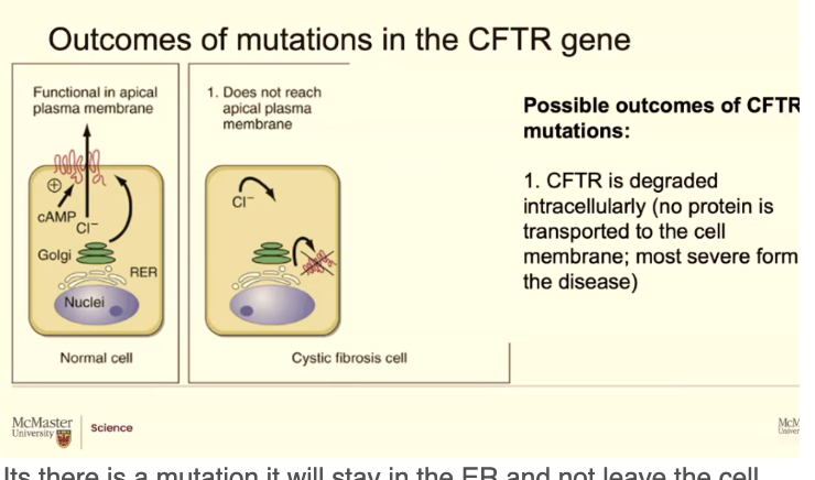 Its there is a mutation it will stay in the ER and not leave the cell