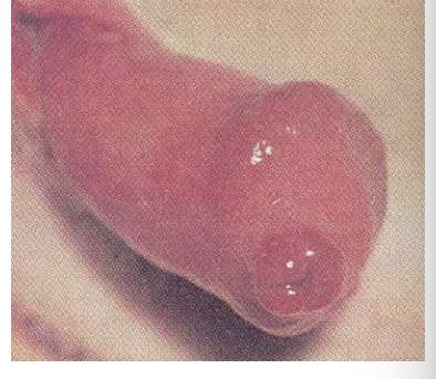 Protruding urethral mucosa (pink/red mass at tip of penis)