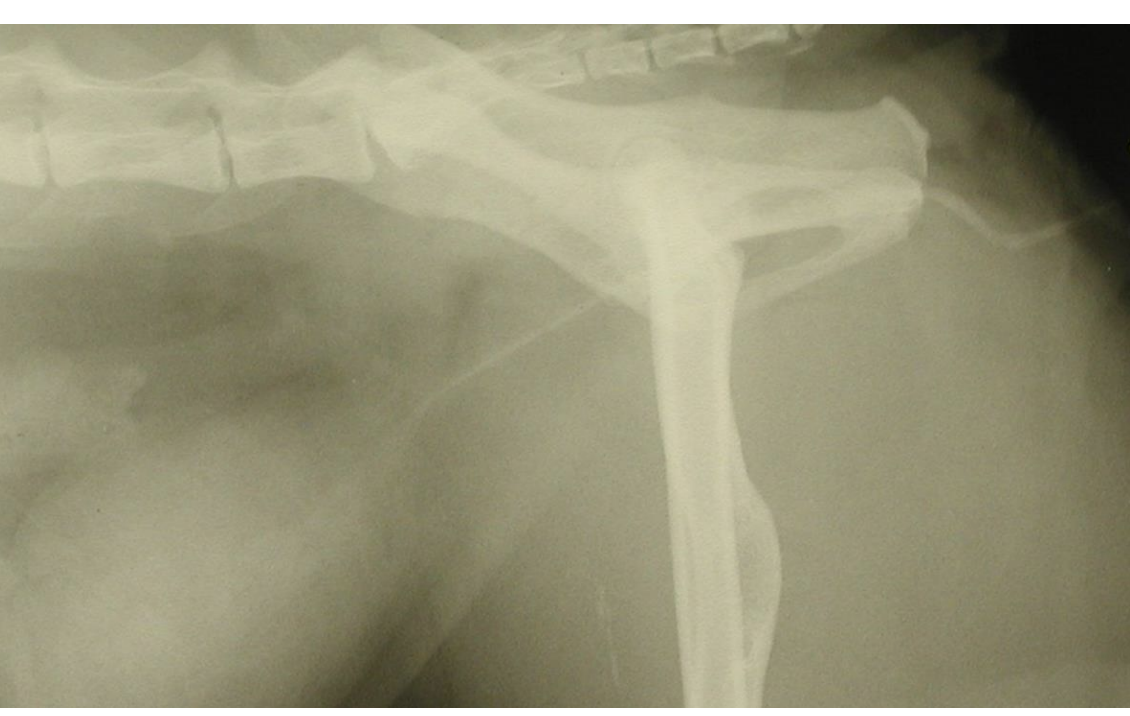 Radiography —> pull hindlimbs back because fabellae can look like urethral calculi