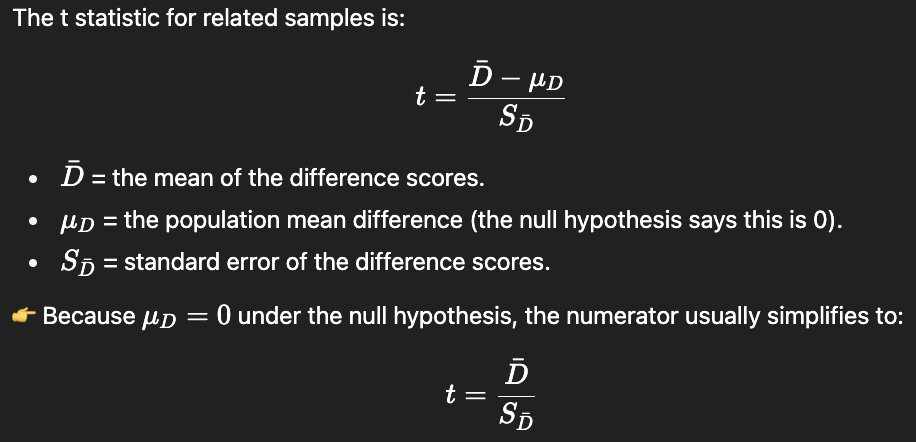 Test is on the difference between means of related samples.