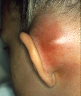rapid onset, with signs/sx of inflammation of ME, most often with otalgia and bulging TM