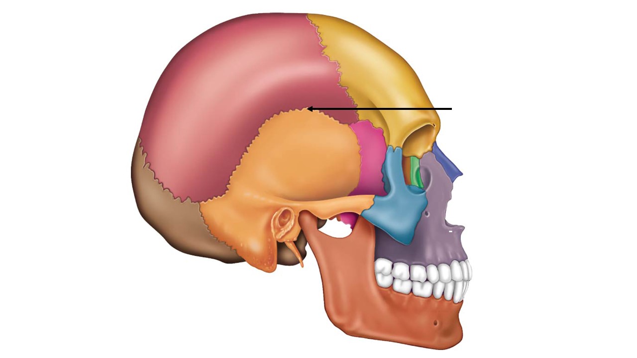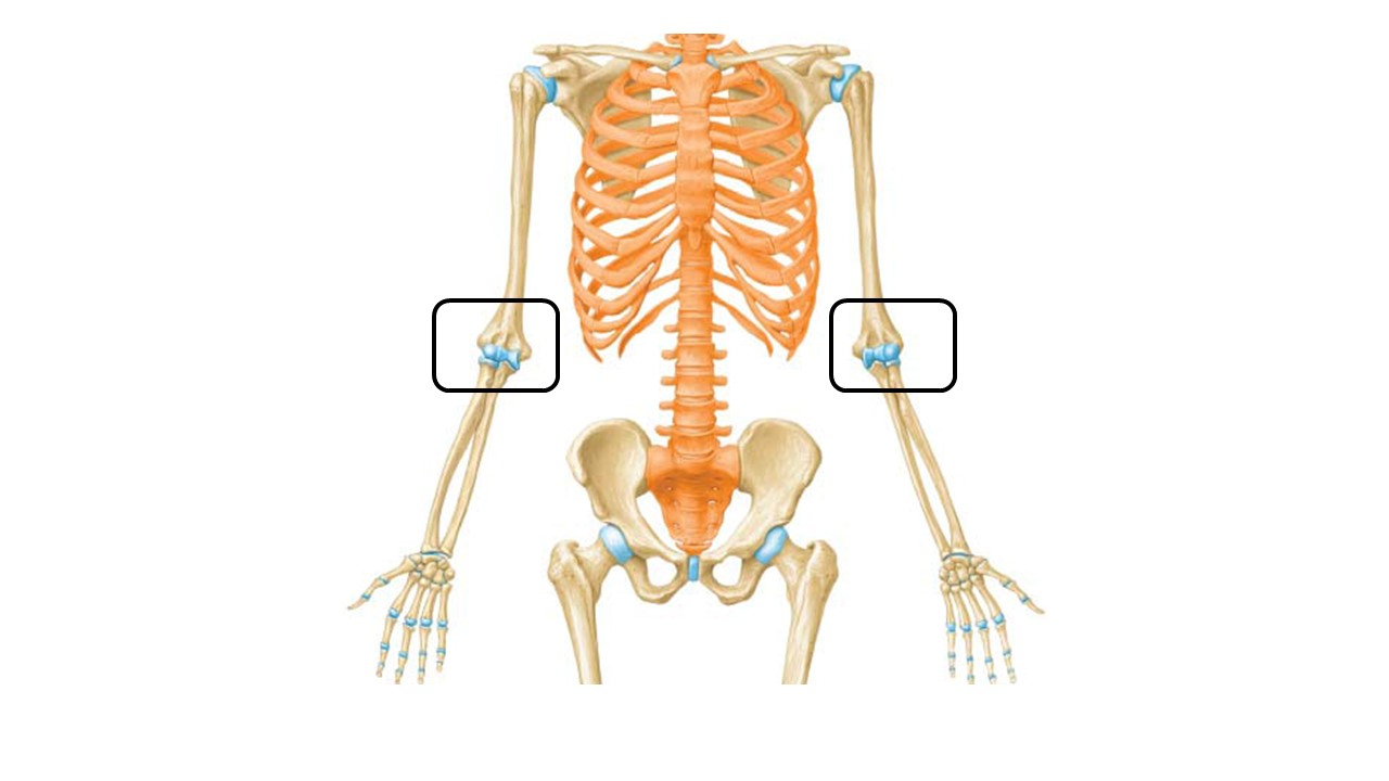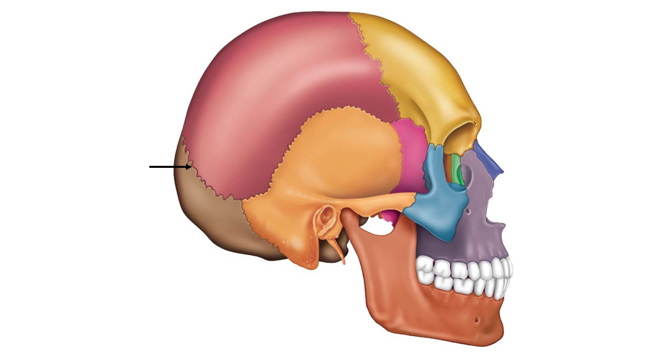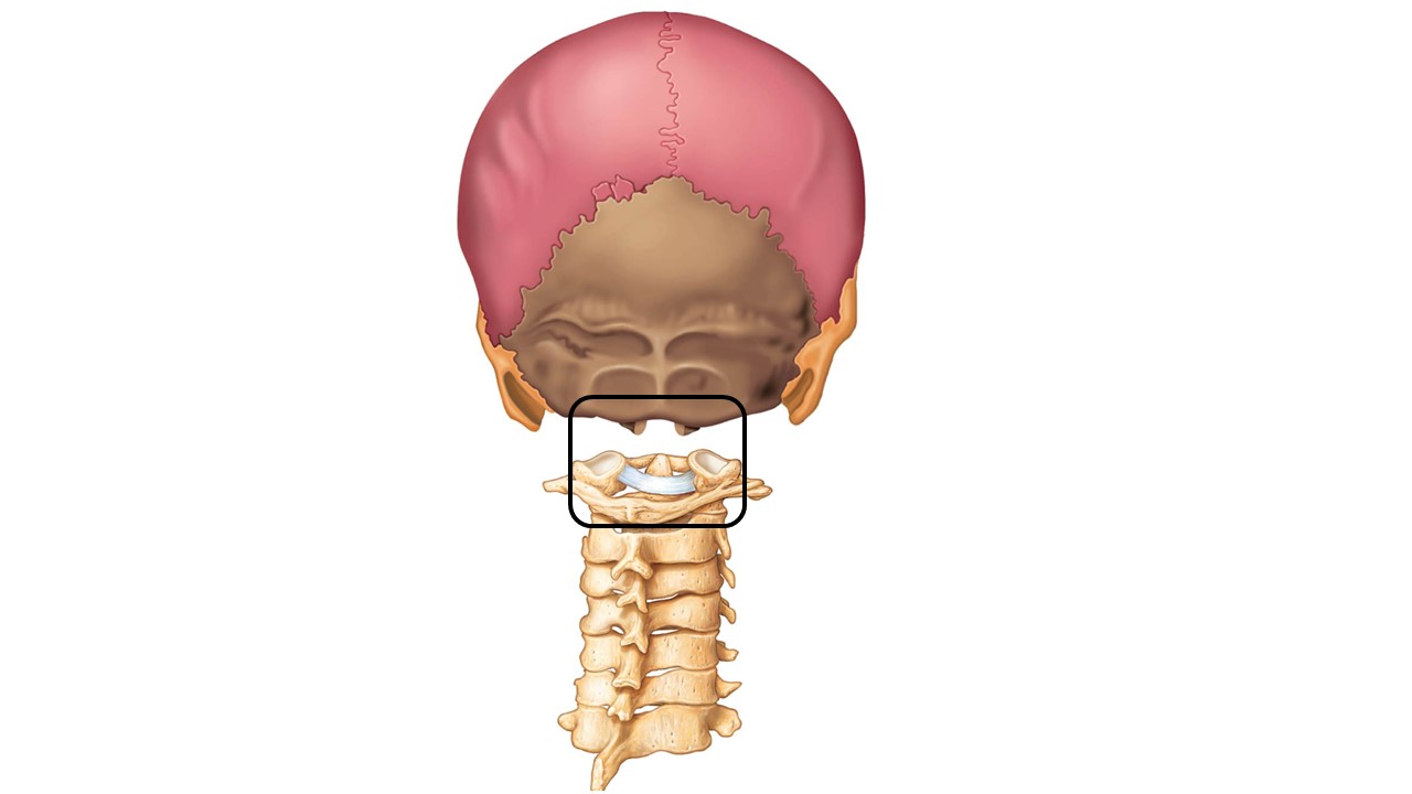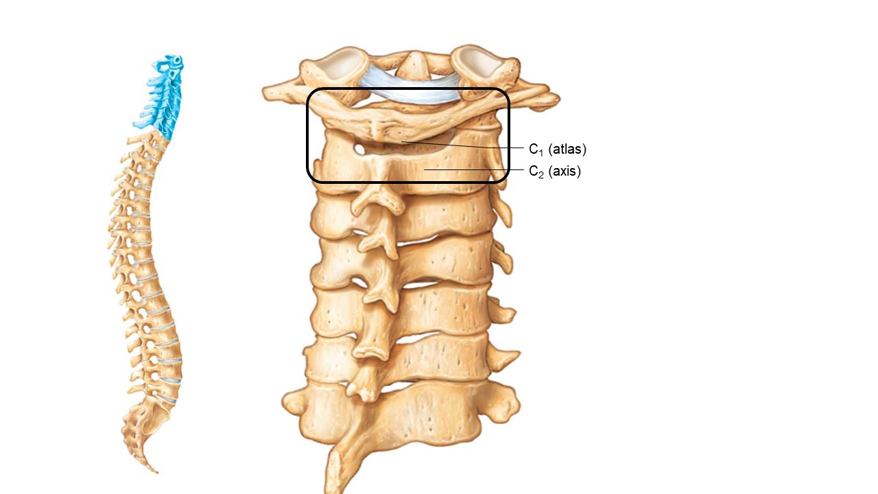 Cervical vertebrae, thoracic vertebrae (all) and base of the skull (occipital bone)