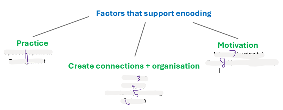 practice and repetition, spacing and the testing effect, motivation, organisation and schemas