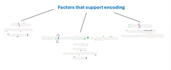 spaced repetition and testing effect; meaning, imagery, levels of processing and schema; internal and external