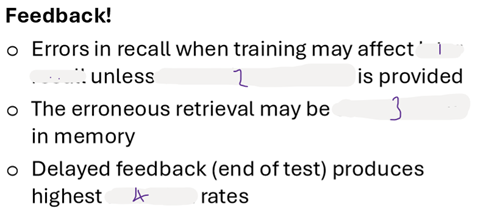 Fill in the gaps about feedback in the testing effect (2 is two words)