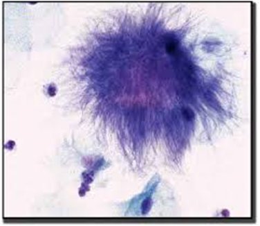 Large, dark, fuzzy clumps of bacteria that look like 'Dust Bunnies.'