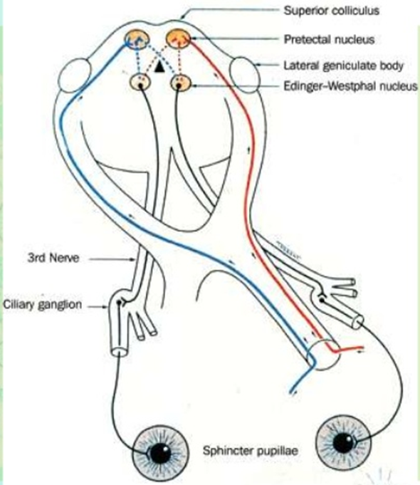 •The pretectal nuclei project fibres to both the ipsilateral and contralateral Edinger Westphal nuclei
