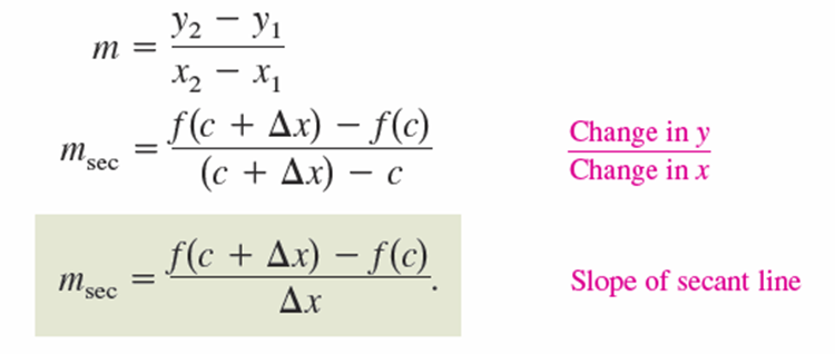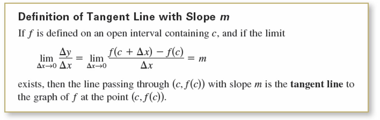 Slope of the tangent line to the graph of f at the point of (c,f(c)) is also called the slope of the graph of f at x=c
