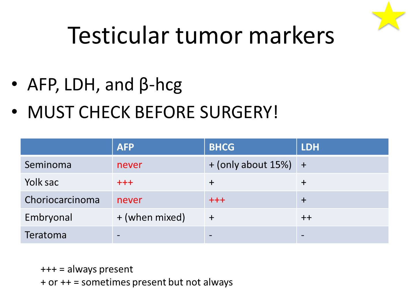 2) Make sure to check tumor markers before and after as well as doing a CT scan and chest X-ray