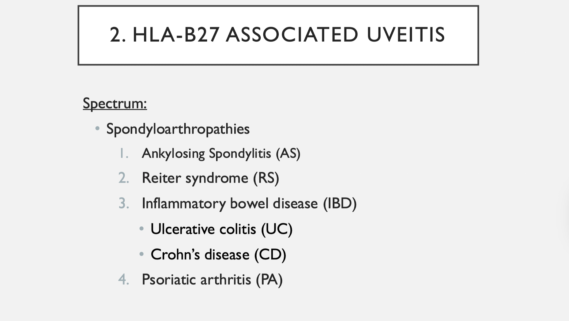 Acute Anterior Uveitis likely due to Ankylosing Spondylitis A&P