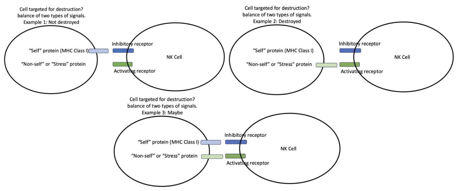when both are present, cell destruction depends on how much of the activation receptor vs inhibitory receptor is present