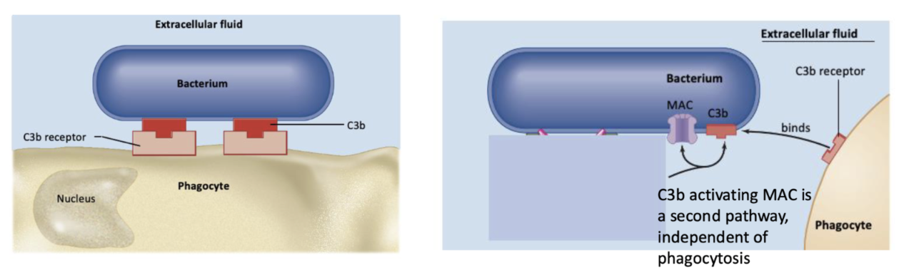 one of the complement proteins; interacts with the pathogen membrane and marks it for destruction via phagocytosis or MAC
