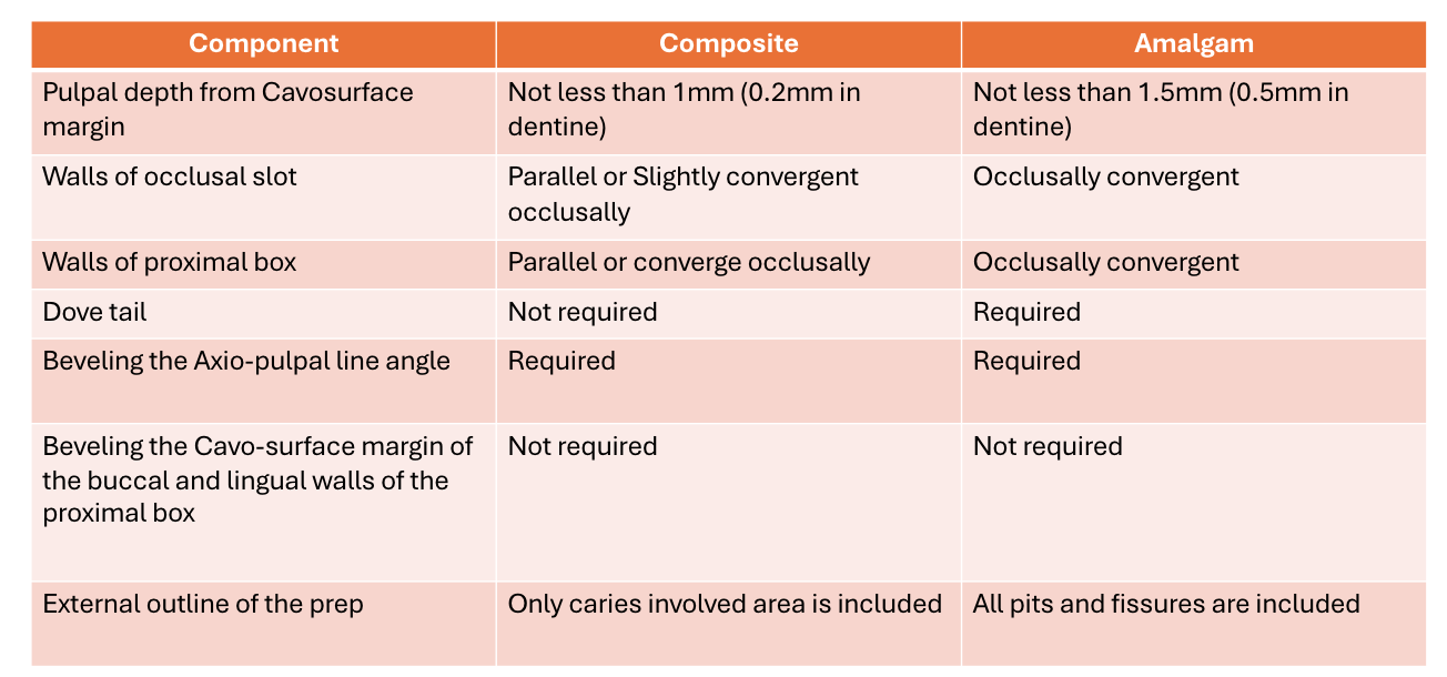 Some differences between amalgam and composite relevant to class II cavity preparation