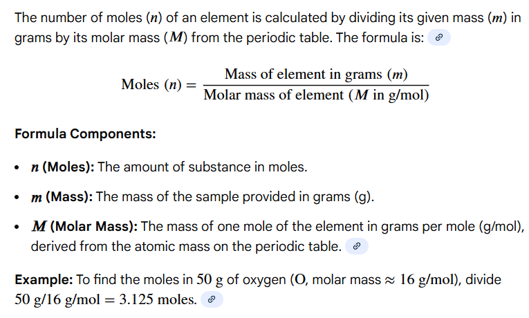 Write out the formula for calculating the # of moles of an element in a sample
