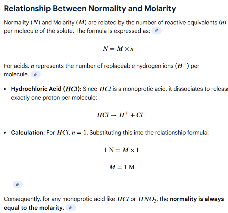 What is the molarity of HCl in a 1 N HCl solution?