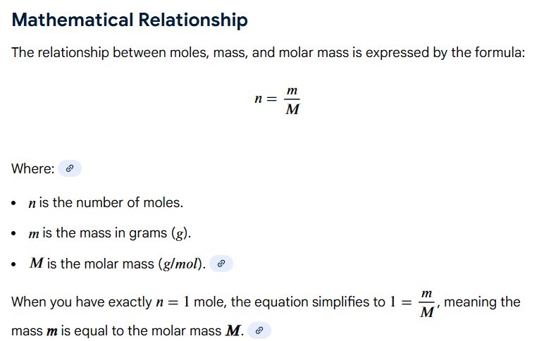 One mole of a compound has a mass in grams equal to the ____________/__________ _________ of the compound in amu
