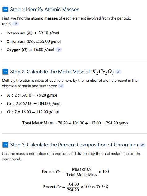 What is the approximate percent composition of chromium in K2Cr2O7? (pg. 130)