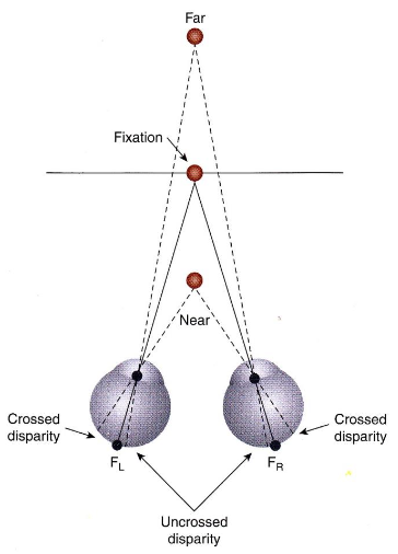 Uncrossed = form nasal to the foveas (signaling that the ball is farther than fixation)