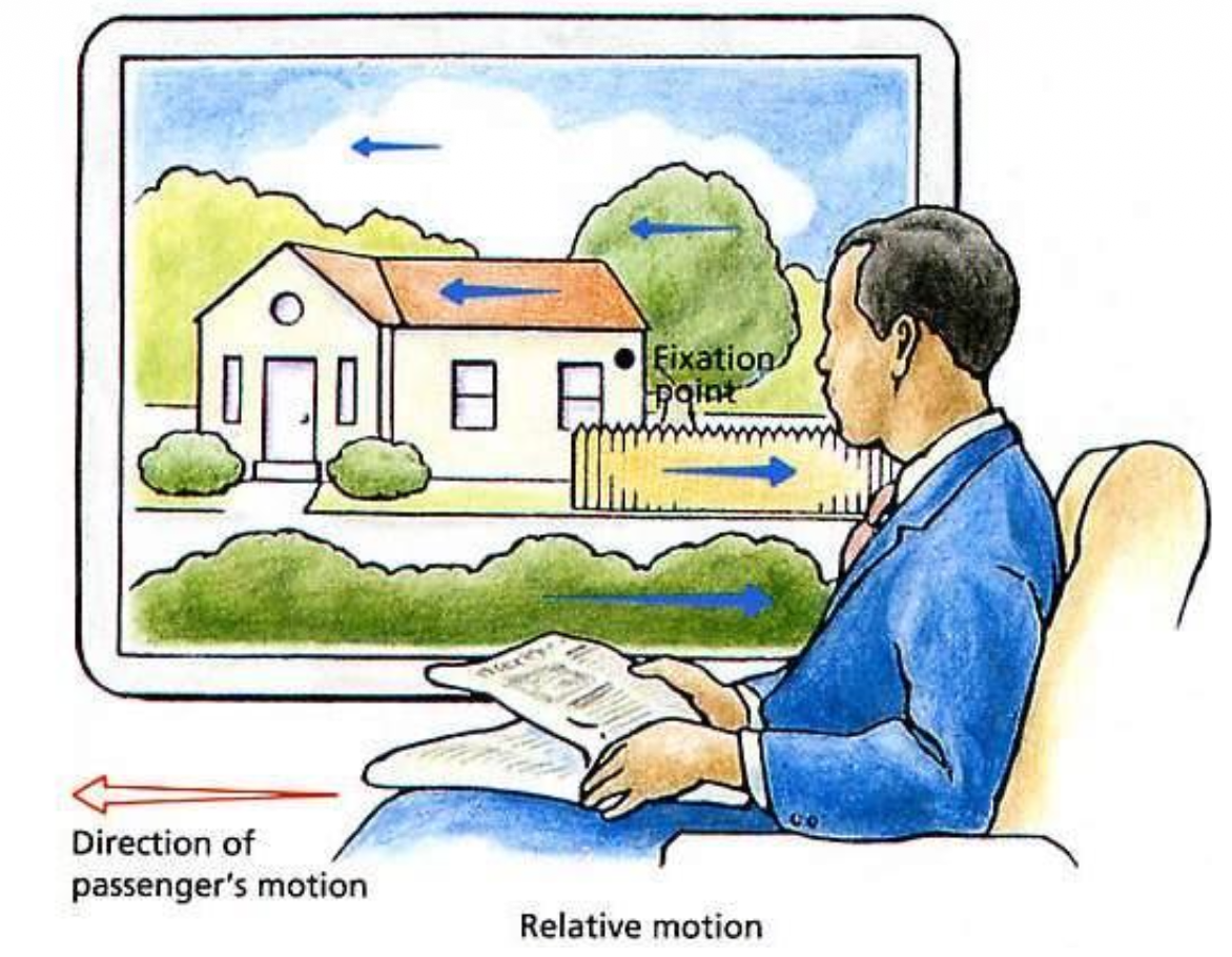 → occurs when the moving observer fixates an object while noticing the relative motion of surrounding objects