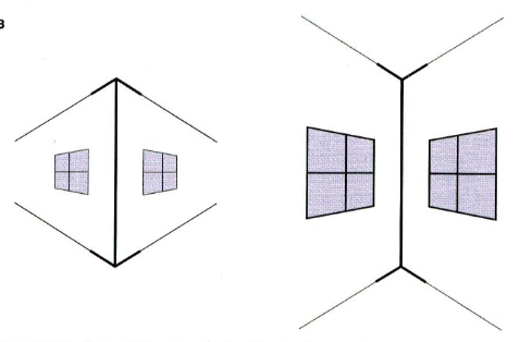 → both lines are the same size, but the line form an outgoing corner appears FARTHER than the ingoing corner line