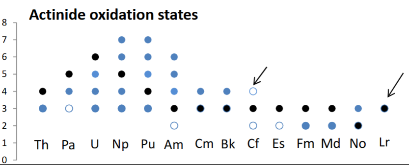 Actinide oxidation states are much more complex than lanthanides, which generally just occupy +3.