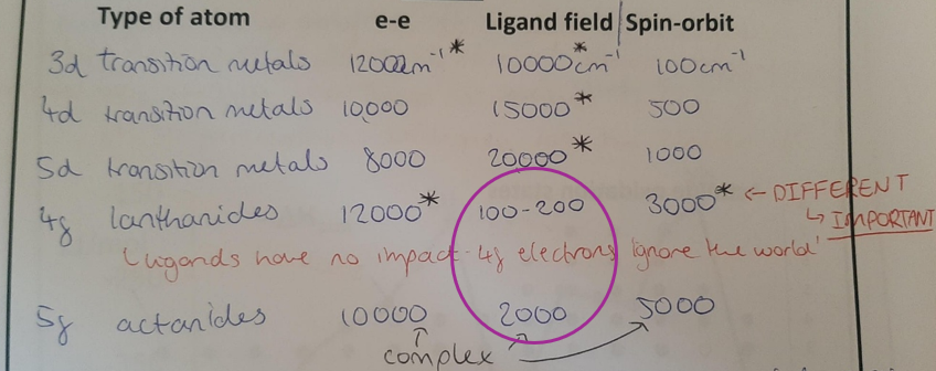(f-block - ligand bonding is mostly ionic)