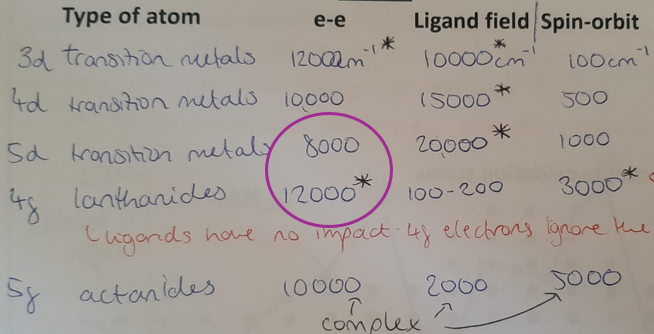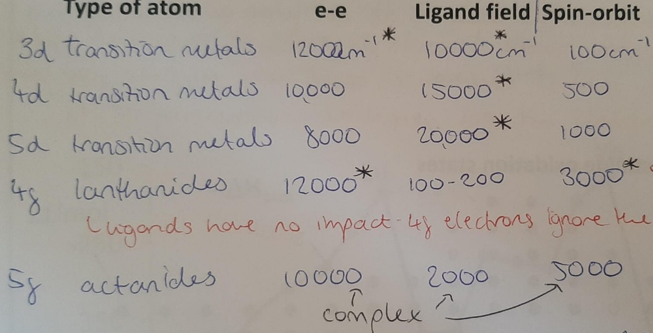 3d → 4d → 5d → 4f → 5f: electrons have higher angular momentum, hence experience more spin-orbit coupling.
