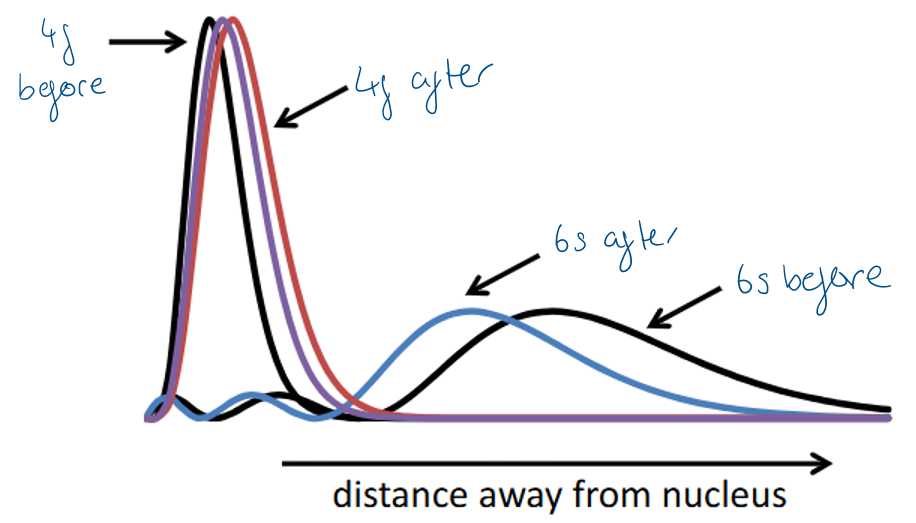 therefore there is higher electron density near the nucleus, resulting in the observed nuclear contraction