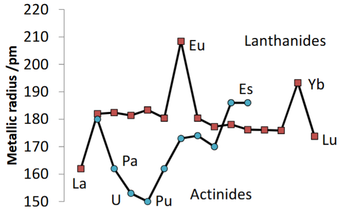 Actanides are larger than lanthanides (due to occupitation of 5f orbitals).