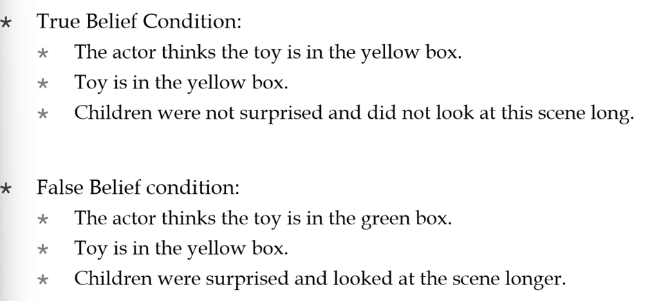 Children see a “Smarties” box that actually contains pencils and are asked what another person will think is inside and what they thought was in the box first