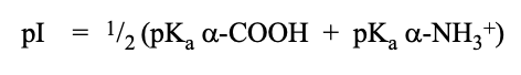pI formula (isoelectric point/net charge = 0)