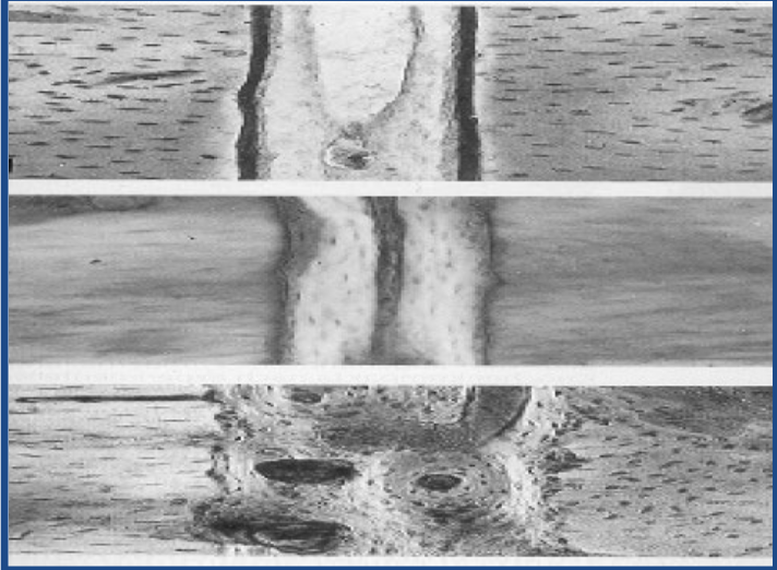 • Osteoblasts deposit perpendicular lamellar bone in gap
