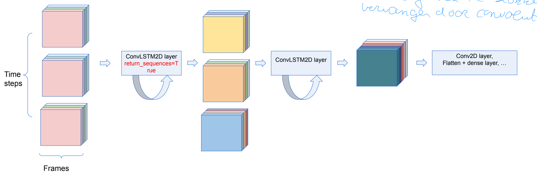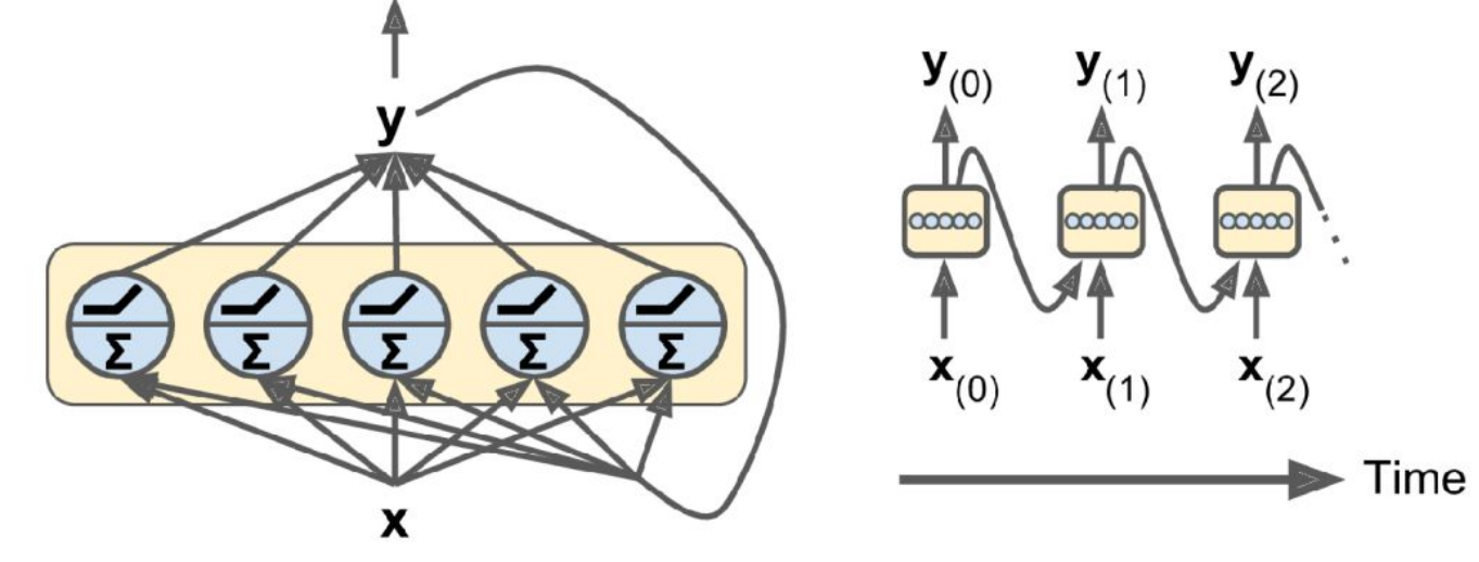op de volgende tijdstap, ontvangt de laag de (vector) output van de vorige tijdstap