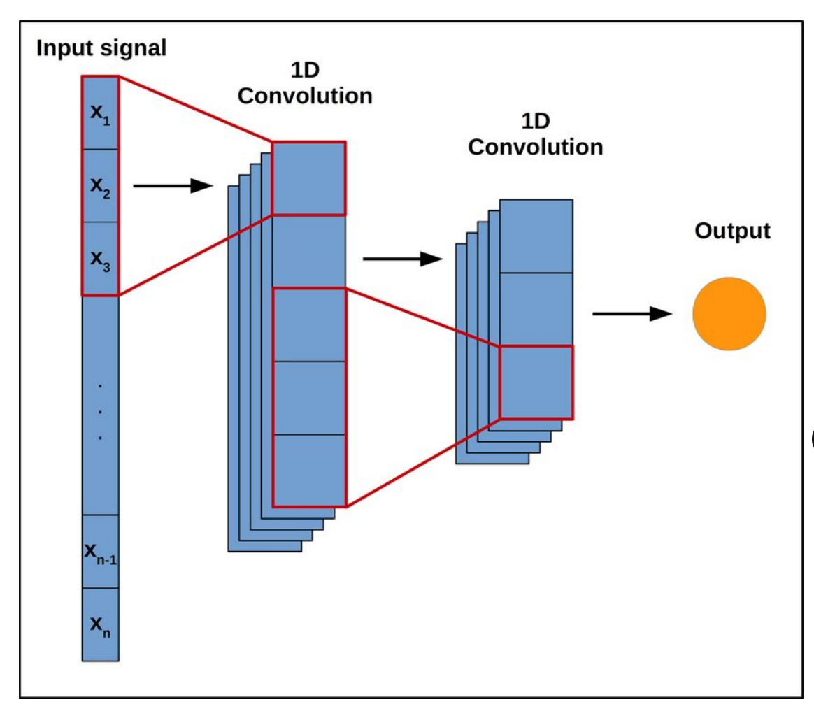 1D convolutionele lagen zijn gelijkaardig maar nu zijn de input en output 1D