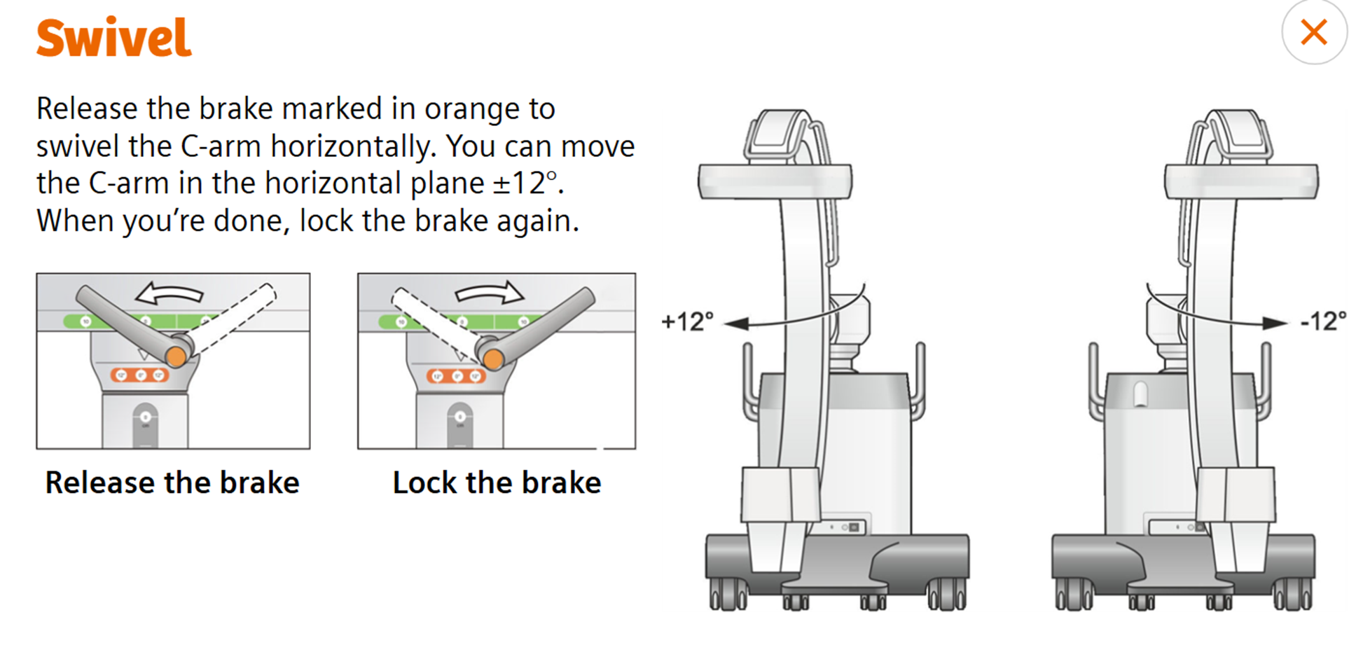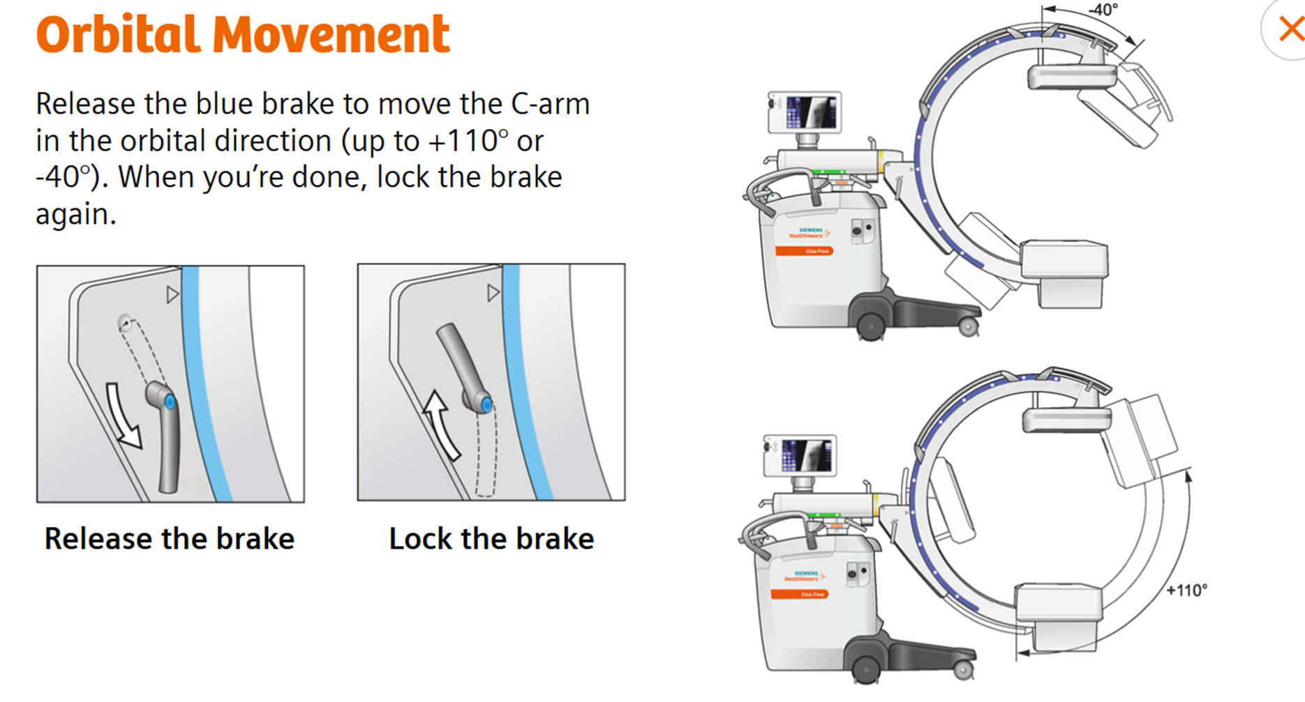 •Ensure the C-Arm does not move once it is centered over the area of interest – use your brake!