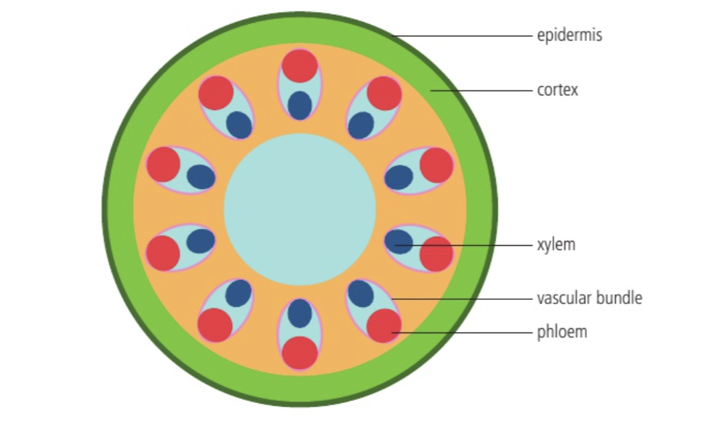 4. Draw, label and annotate a cross section of a stem