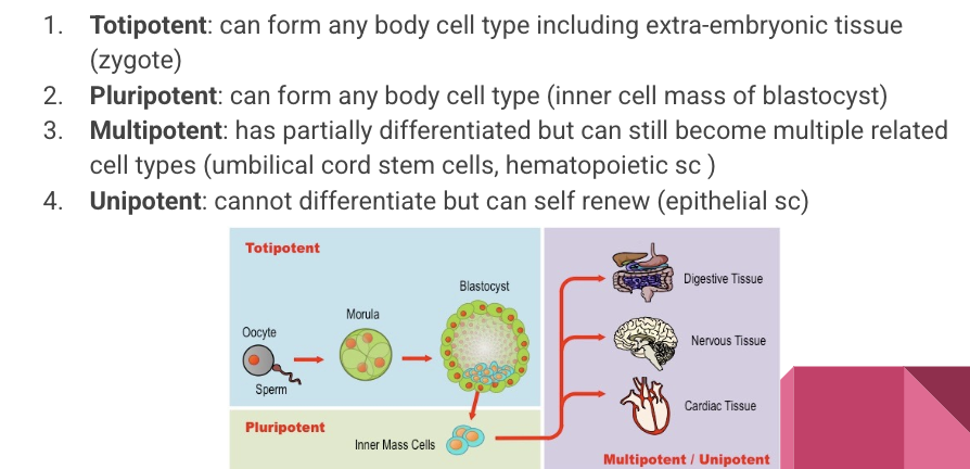 30. Make a chart describing the four different types of stem cells.