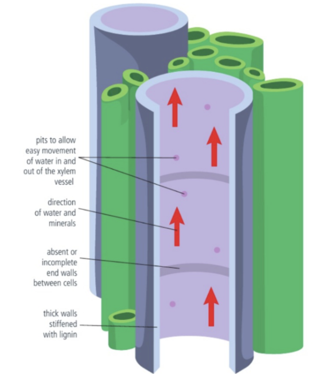 9. Draw and label the vessel elements of xylem and explain the importance of its structure to its function.