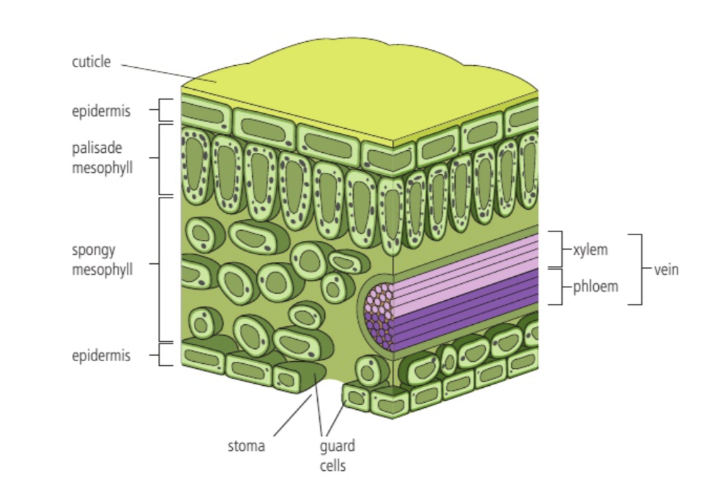 5. Draw, label and annotate a cross section of a leaf
